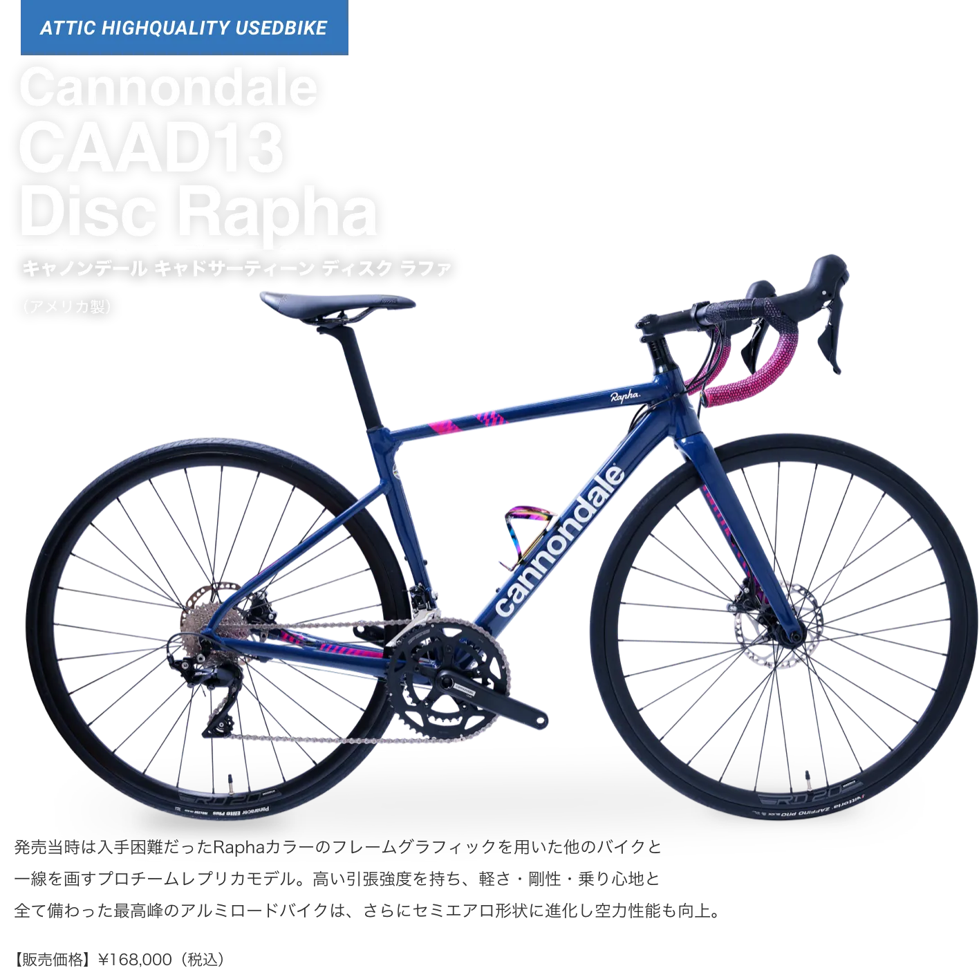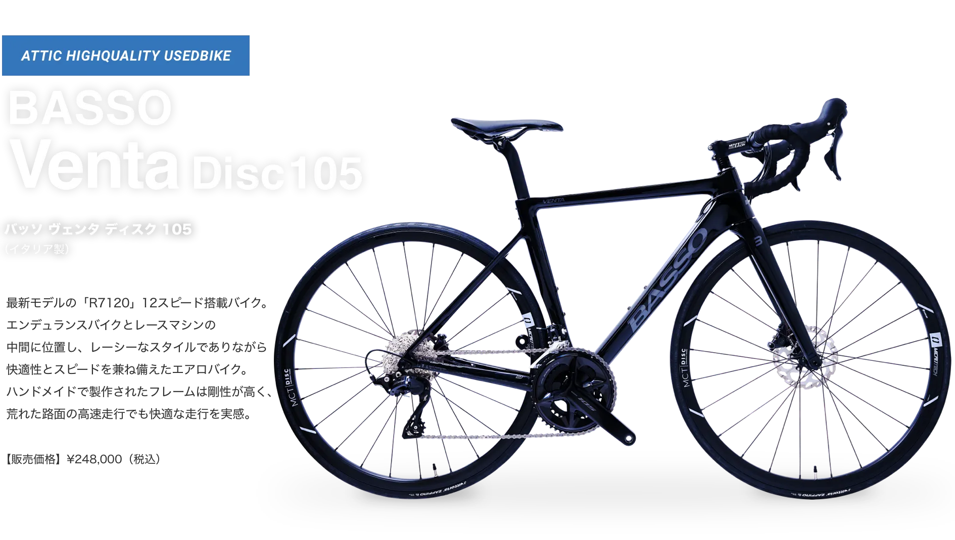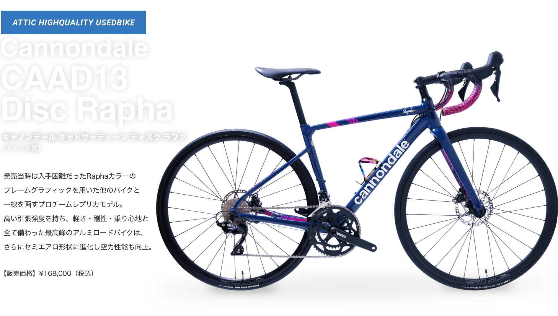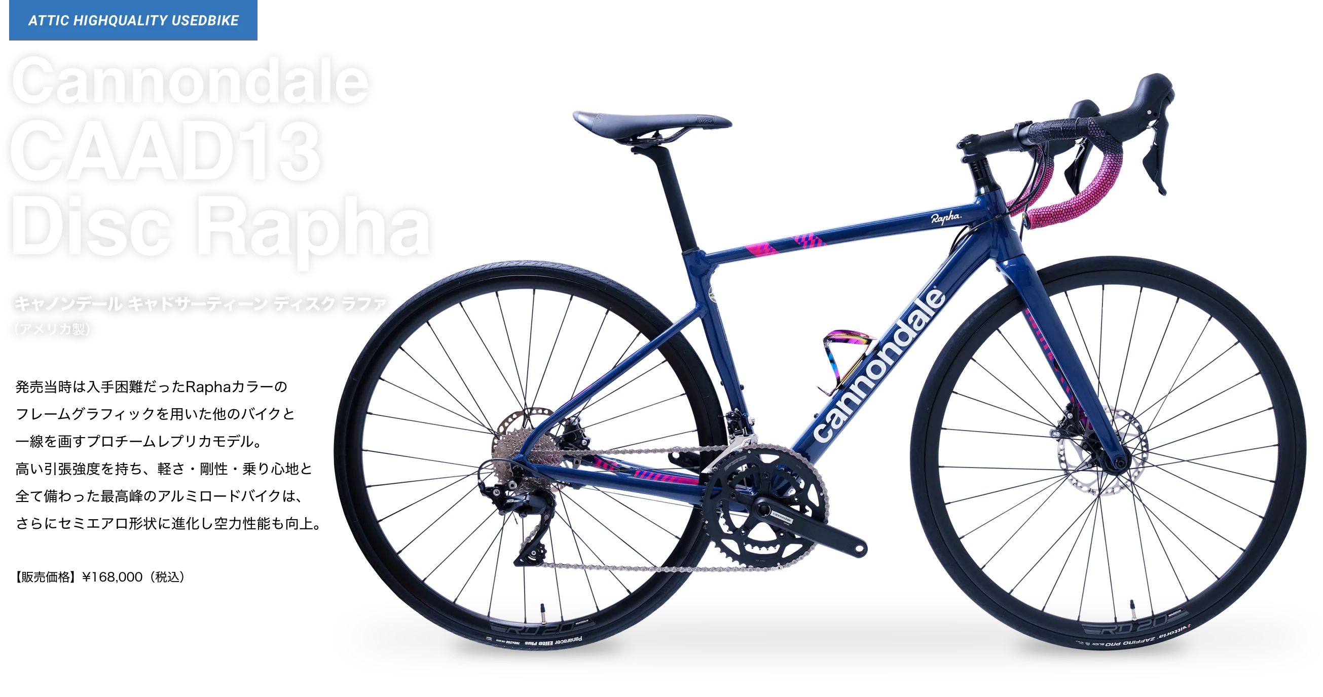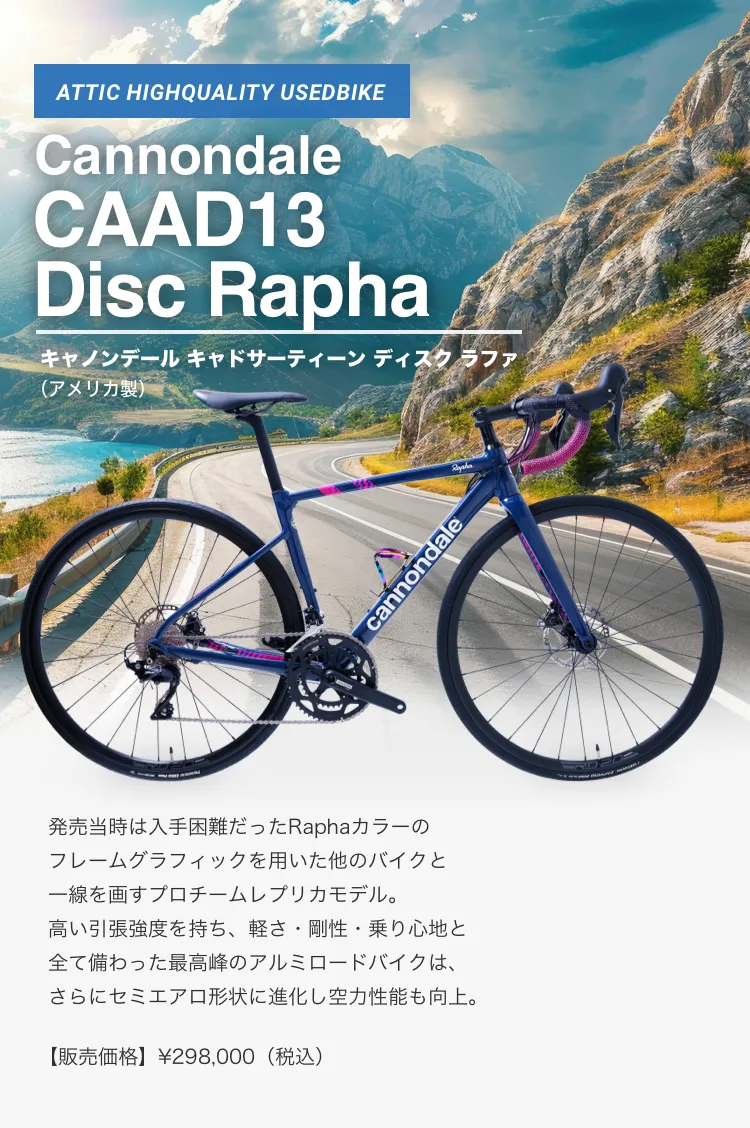 アティックでは、お客様が大切に愛用されていたロードバイクを厳選して買取り、元レーサーの店長自らが整備して、アティック整備車としてご提供しています。取扱いは人気メーカーから希少メーカーまで、日本製・海外製を問わず、中古車のためすべて一点物のラインナップとなります。