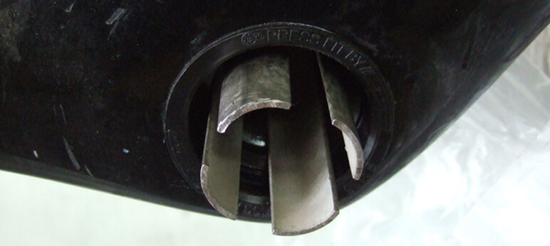 今回の工具では、そもそも筒の内径がカップの内側の内径よりも実測で1mm狭かったから、まっすぐポンチを入れたら先っちょがカップに引っ掛からないのは当たり前。筒がなければカップにバチンとポンチが嵌ったのに、筒があるからポンチが拡がれずカップにしっかり掛からない。