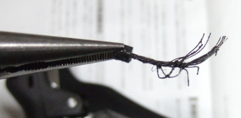 特に、レバー操作で巻取りレバーと解除レバーを交互に何度も動作させていると、レバーユニットが動くたびに切れたケーブルの先端がばらけます。今回は除去できましたが動かせば動かすほど先端がどんどんばらけてくるのです。